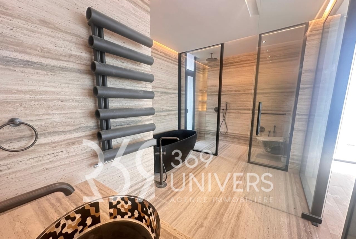 - au rez-de-chaussée: un salon avec cheminée éthanol, une cuisine équipée, une chambre à coucher et une salle d’eau invités,